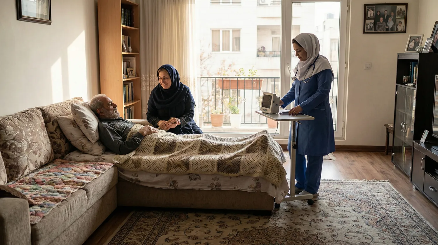- قبل از ترخیص، خانه را برای نقاهت آماده کنید: مسیر رفتوآمد را خلوت و روشن نگه دارید، فرشهای لغزنده و سیمها را جمع کنید، وسایل ضروری را کنار تخت بگذارید و اگر پله زیاد است فضای استراحت را تا حد ممکن به طبقه همکف منتقل کنید.