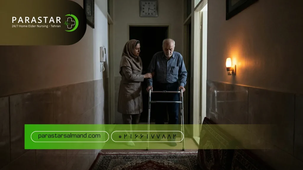 افت دید و مشکلات حرکتی: بسیاری از سالمندان بهدلیل کاهش دید و ضعف عضلات، هنگام شب در معرض سقوط یا آسیبدیدگی هستند. وجود یک پرستار که بتواند محیط را برای حرکت امن سازد و در صورت نیاز همراهی کند، ضروری است.